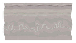 地学授業スランプ構造 地層 スランプ構造のイラスト。水底に積もった層が何らかの影響(海底地すべりなど)でより水深の深いほうへ向かってズレた際にできる変形構造。ある意味一種の褶曲ともとらえられる。うねうねとしているので火炎構造と印象が似ているが、で... 2022.01.14地学授業地形素材