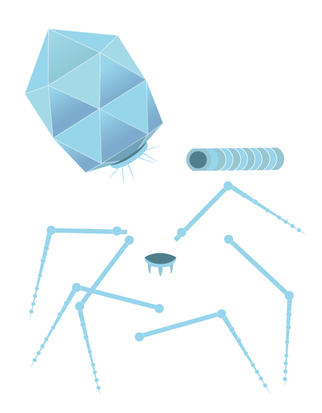宇宙船よろしく大腸菌の表面に降り立った彼らは、脚を展開してしゃがみ込むと付け根にあるスパイクタンパク質で特定の大腸菌にしっかり取り付き、まるで注射をするかのように自身のDNAを注入する。