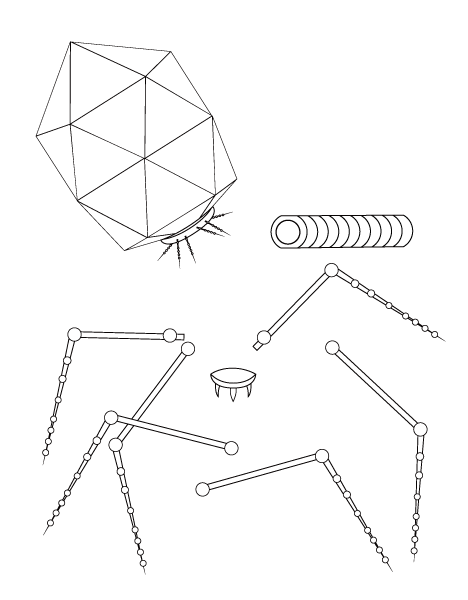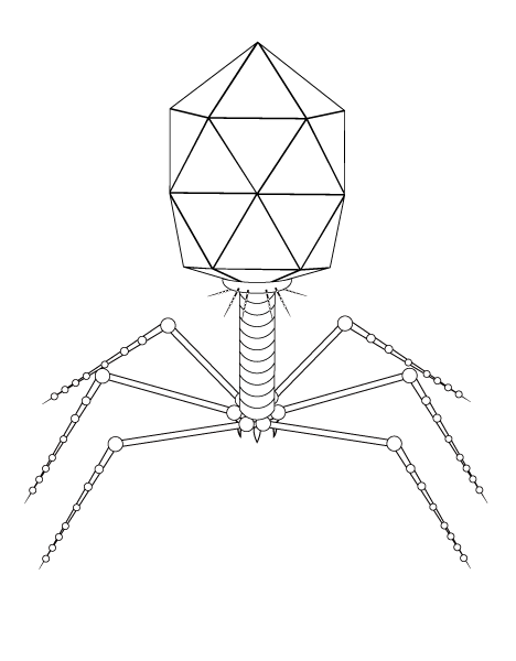 数年前までは30面体だという考えが主流だったが、近年はT4ファージと同じで20面体だとする意見もある。