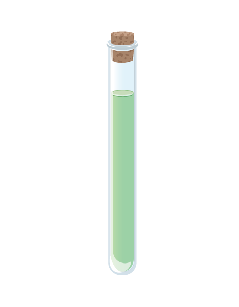 小学生の理科でも扱う有名な指示薬で、液体の酸性度…pH(ペーハー、ピーエイチ)を知ることができるBTB溶液のイラスト。