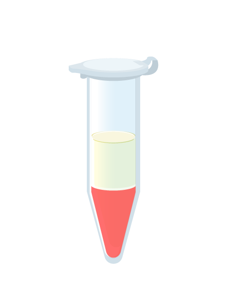 さて、遠心分離にかけられた血液はどうなるかというと、ざっくり薄黄色の液体の層と濃い赤色の層に分かれる。