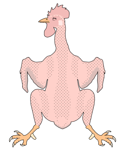 全身をふわふわと覆っているが、実はほとんどの鳥類では身体中全てに生えているわけでなく羽毛の生えているところ(羽域※イラスト中ドット模様&グレーのエリア)と生えていないところ(無羽域)が存在する。