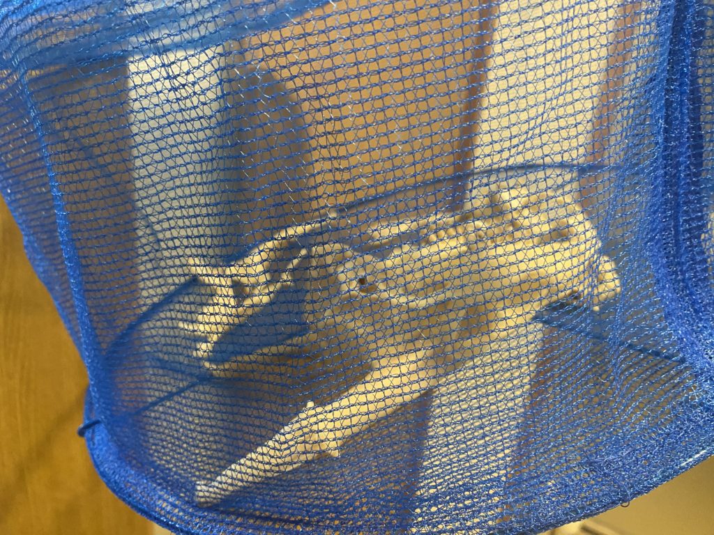 空になったバケツに入れて、バケツごと乾燥させてもいいですが、干物用のネットを活用したり洗濯ネットに入れて吊るしてもいいでしょう。