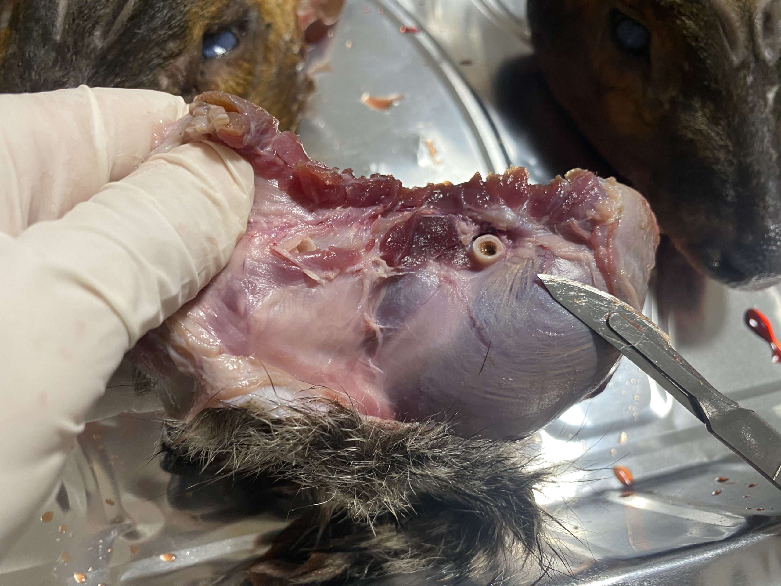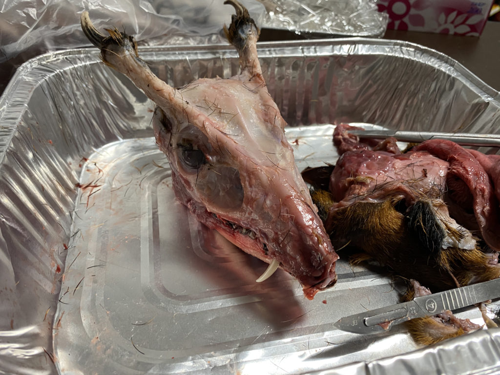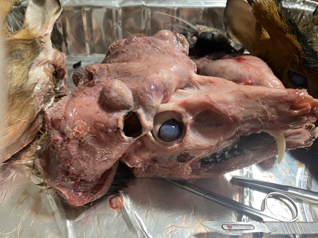アライグマの脳天に内出血があるなぁ…とか、キョンの牙すご…とか、眼下腺もう一個目玉入りそう…とか、やっぱ上の前歯無いんだなぁ…とか、観察しながら剥いていき、こうなりました。