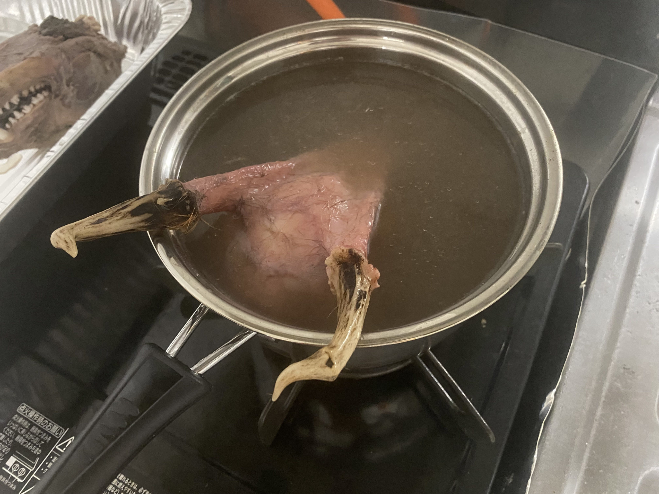 煮足りないと全然肉がとれず大変&この後のポリデント漬けでひどい臭いになるので、